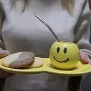 Compuesto por 1 Mate Burbuja de cerámica con bombilla + 1 Bandeja de cerámica forma 8 + Individual cordura